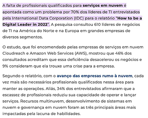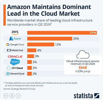 Veja que conforme as pesquisas a AWS (Amazon Web Services) é quem detêm a maior parcela de mercado no Brasil e no Mundo.